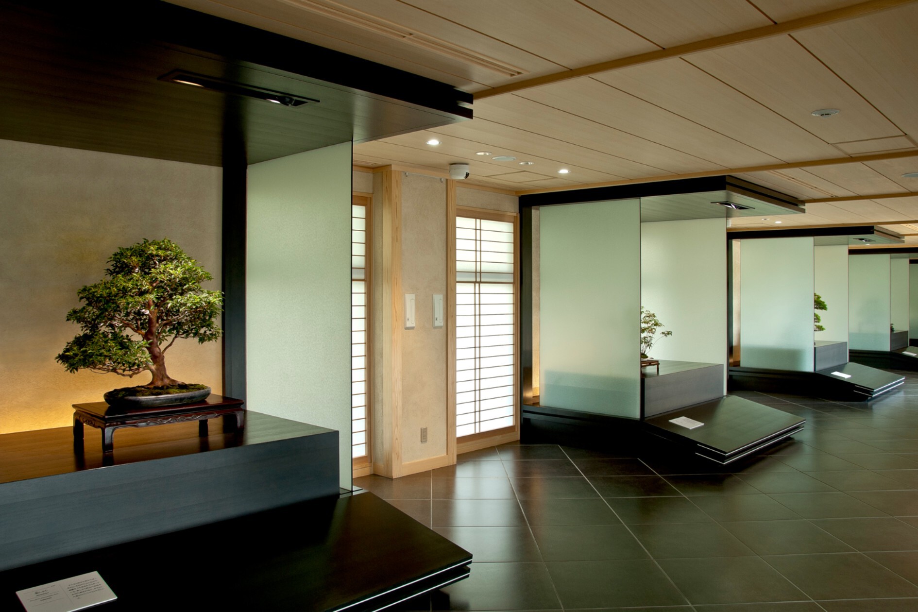館内には盆栽を眺めながら一息つけるテラスもあり、ゆったりとした時間が流れています。四季折々の変化が楽しめるため、いつ訪れても新しい感動が待っています。至高の造形美に触れに、ぜひ一度お越しください。